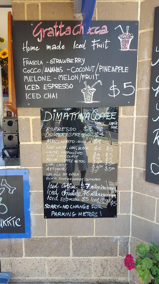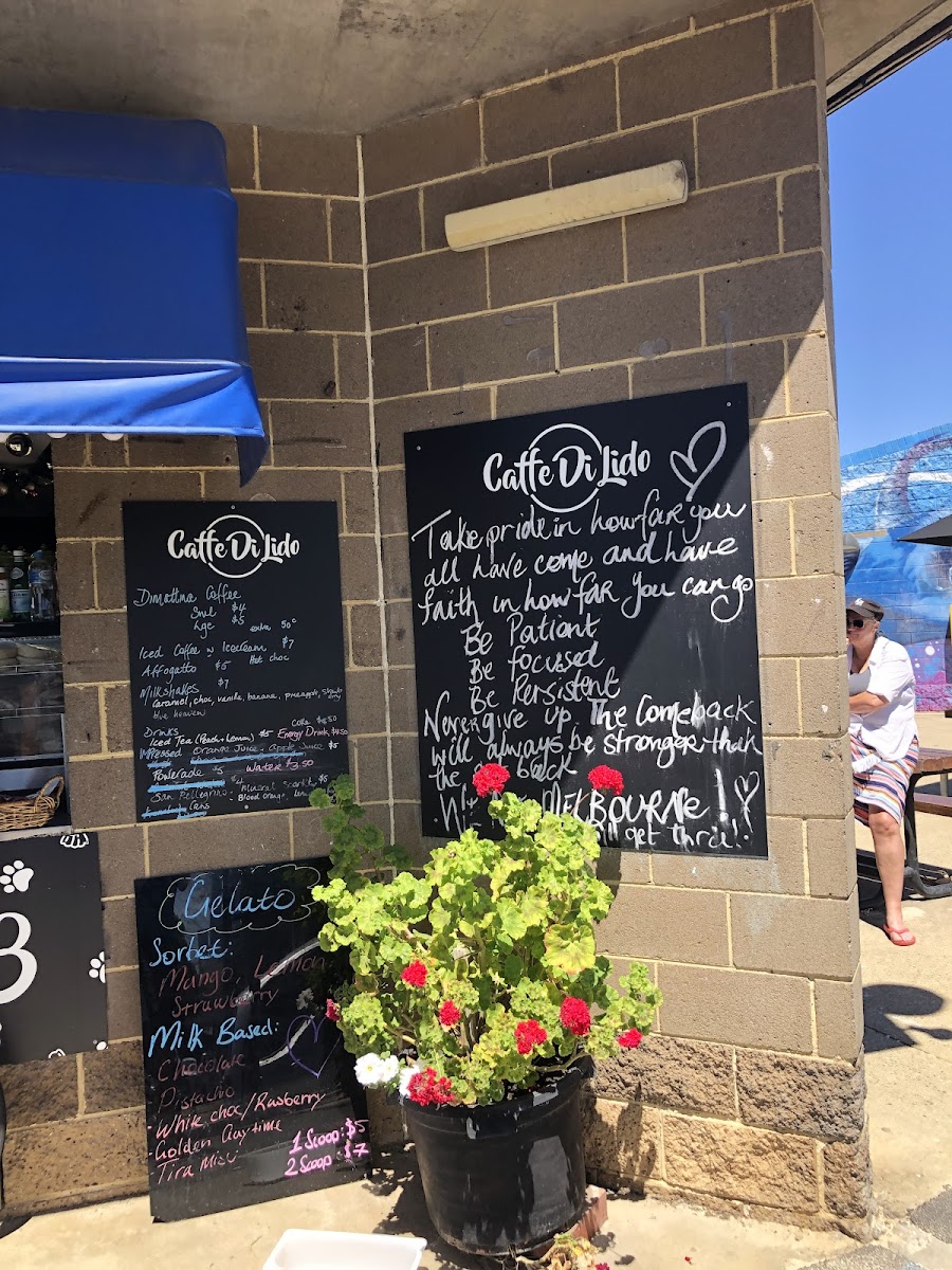 The menu at Caffe Di Lido features a selection of coffee and light food options suitable for breakfast, coffee breaks, and casual meals. Visitors can find a variety of coffee drinks, including Flat White and Ice Coffee, alongside other beverage choices priced around A$4.50.
